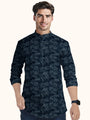 Men Smart Fit Floral Print Blue Full Sleeve Kurta