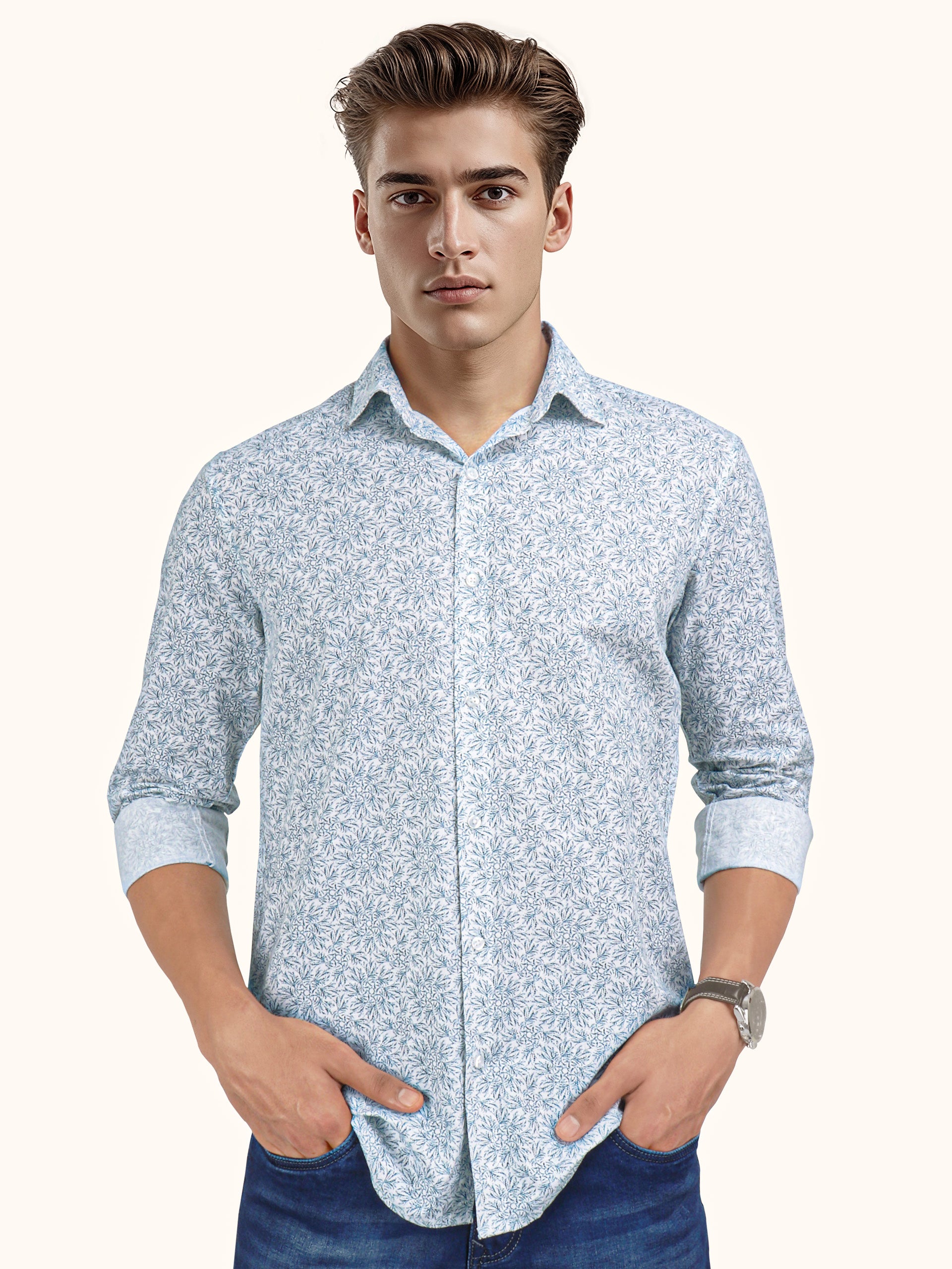 Men Smart Fit Floral Print Sky Full Sleeves Shirt