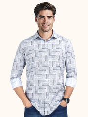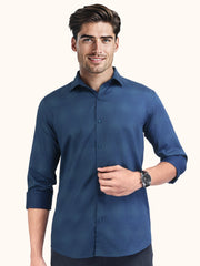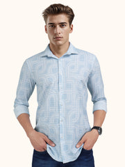 Men Smart Fit Abstract Print Blue Full Sleeve Shirt