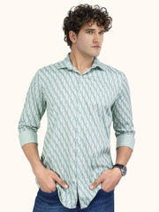 Men Smart Fit Abstract Print Green Full Sleeve Shirt