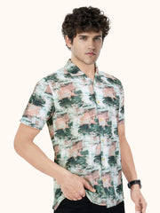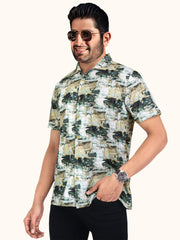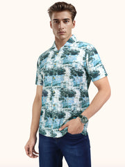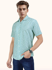 Men Smart Fit Abstract Print Green Half Sleeve Shirt