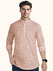 Men Smart Fit Abstract Print Orange Full Sleeve Kurta
