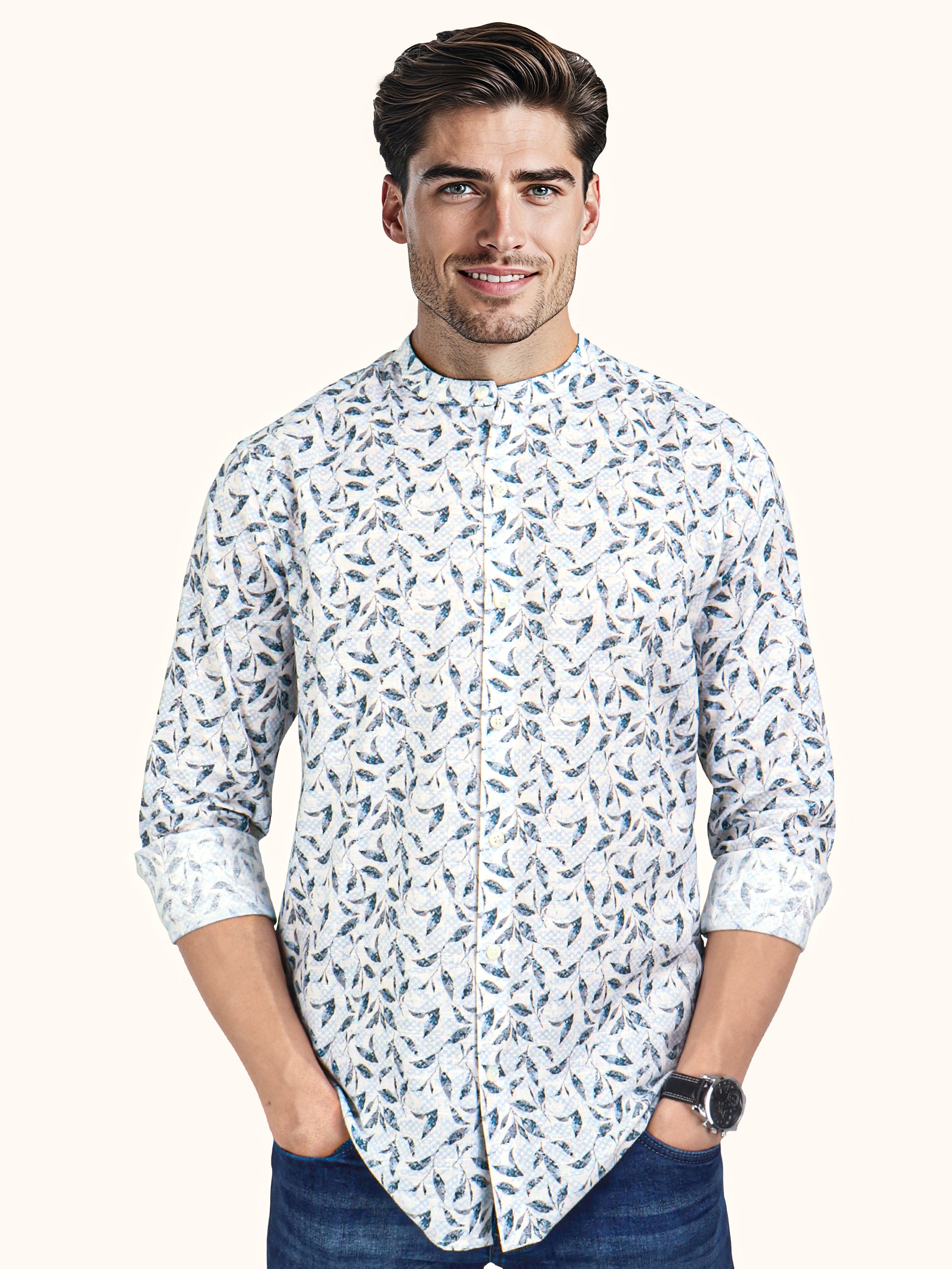 Men Smart Fit Floral Print Blue Full Sleeve Shirt