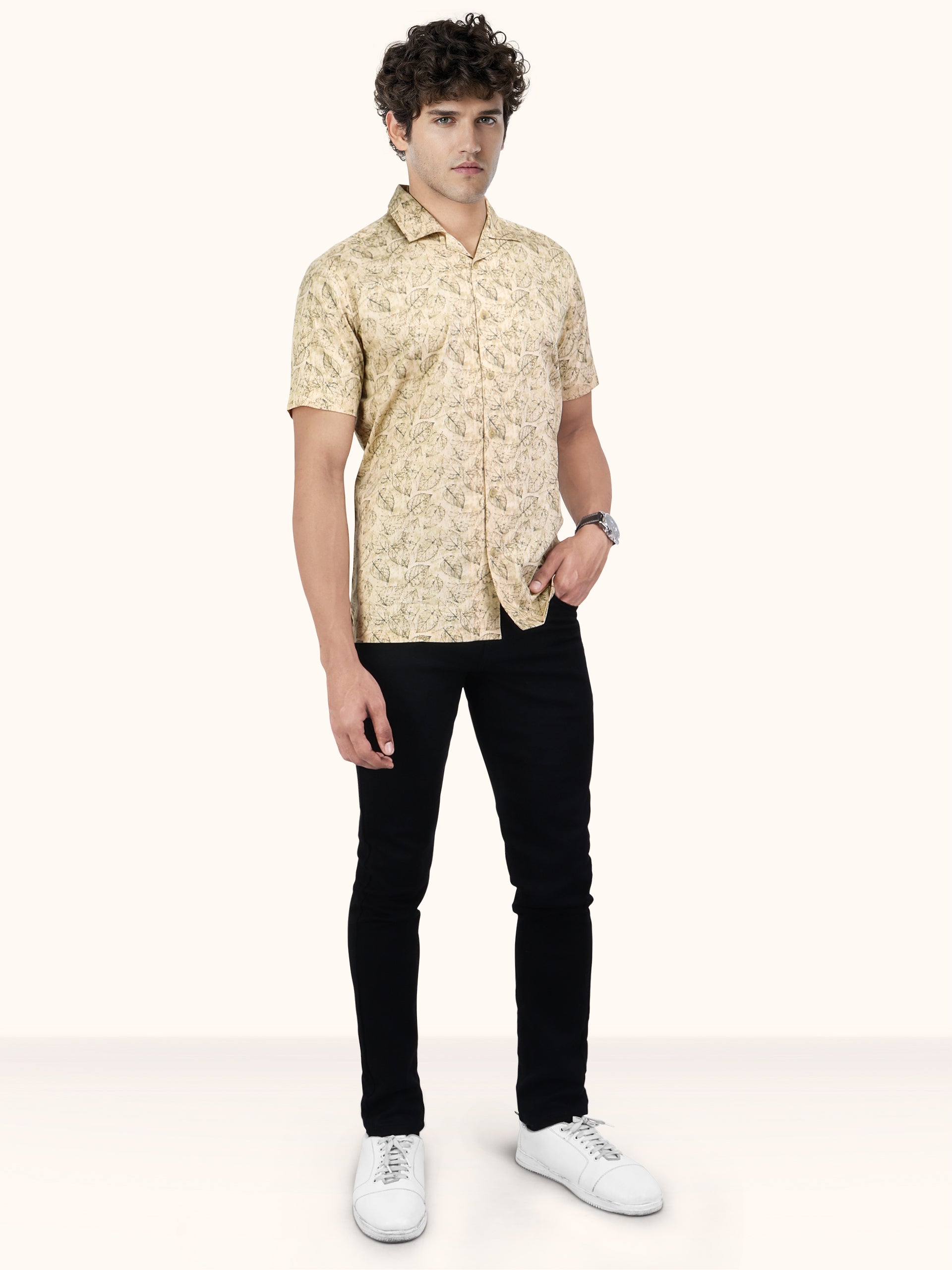 Men Smart Fit Floral Print Beige Half Sleeve Shirt