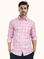 MENS COTTON PINK CHECKERED SLIM FIT FULL SLEEVE CASUAL SHIRT