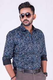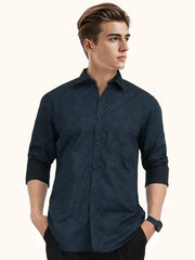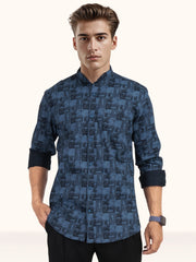 MENS COTTON BLUE PRINTED SLIM FIT FULL SLEEVE CASUAL SHIRT