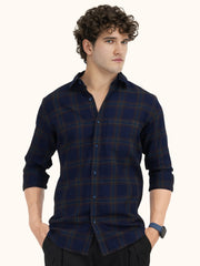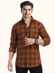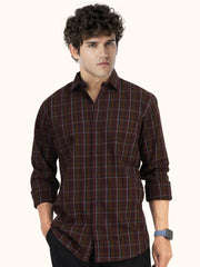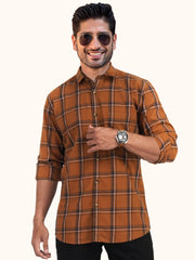 MENS COTTON BROWN CHECKERED SLIM FIT FULL SLEEVE CASUAL SHIRT