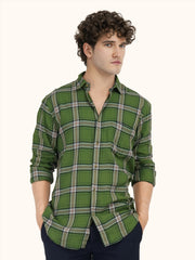 MENS COTTON GREEN CHECKERED SLIM FIT FULL SLEEVE CASUAL SHIRT