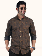 MENS COTTON BROWN PRINTED SLIM FIT FULL SLEEVE CASUAL SHIRT