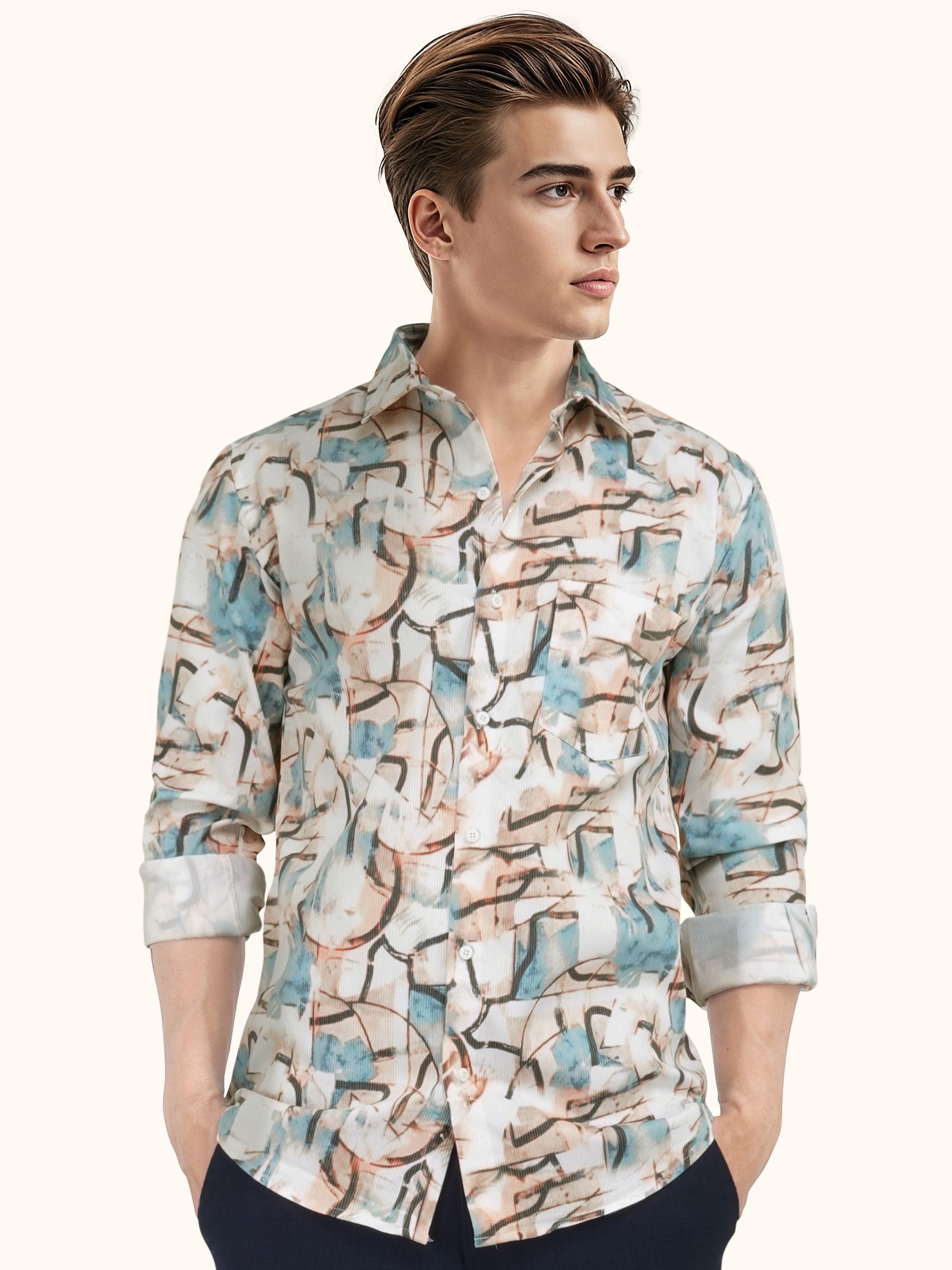 MENS CRACKER MULTI COLOR PRINTED SLIM FIT FULL SLEEVE CASUAL SHIRT