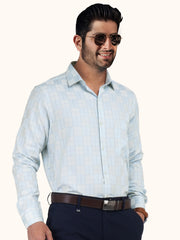 MENS COTTON SKY CHECKERED SMART FIT FULL SLEEVE FORMAL SHIRT