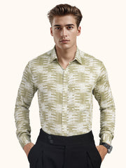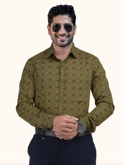 MENS COTTON OLIVE PRINTED SMART FIT FULL SLEEVE FORMAL SHIRT