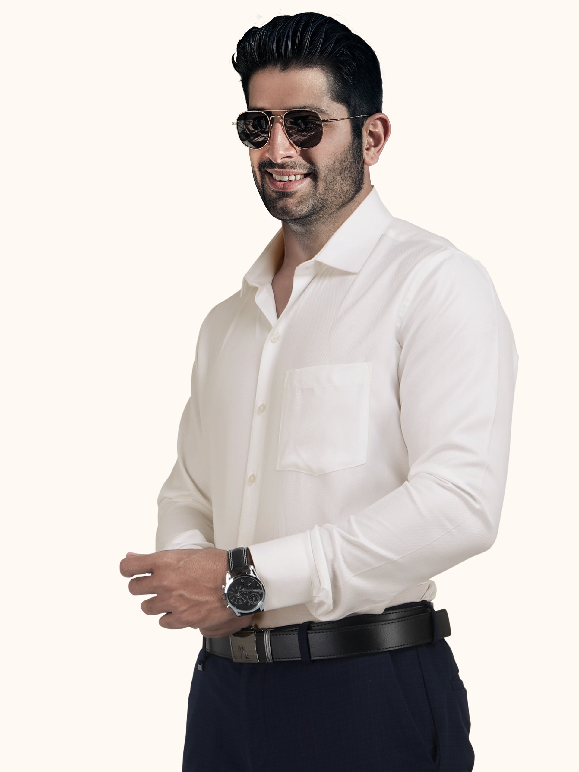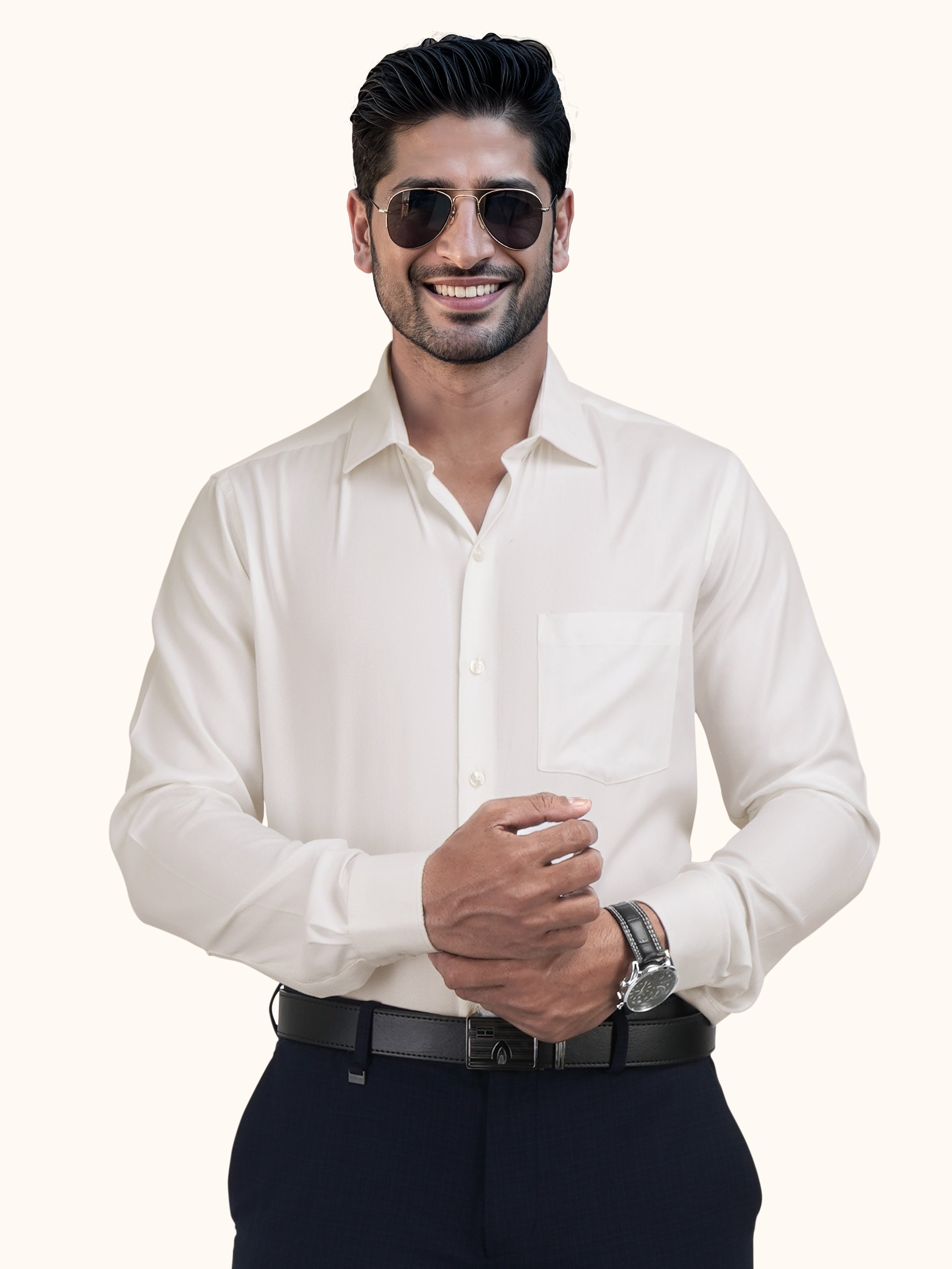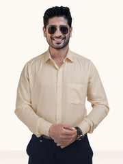 MENS CREAM PLAIN SMART FIT FULL SLEEVE FORMAL SHIRT